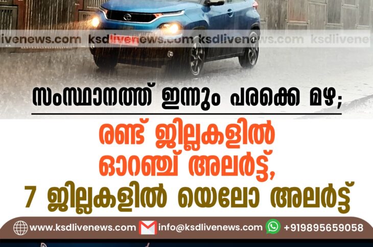 കേരളം സംസ്ഥാനത്ത് ഇന്നും പരക്കെ മഴ; രണ്ട് ജില്ലകളിൽ ഓറഞ്ച് അലർട്ട്, 7 ജില്ലകളിൽ യെലോ അലർട്ട്June 11, 2024