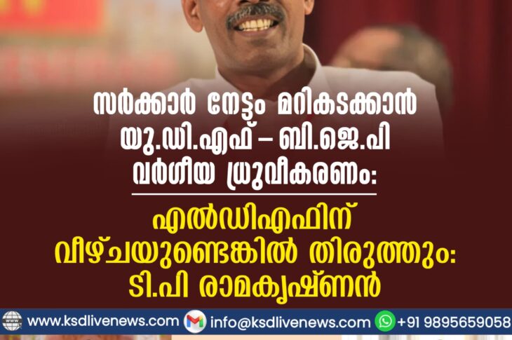 കേരളം സർക്കാർ നേട്ടം മറികടക്കാൻ യുഡിഎഫ്-ബിജെപി വർഗീയ ധ്രുവീകരണം: എൽഡിഎഫിന് വീഴ്ചയുണ്ടെങ്കിൽ തിരുത്തും: ടി.പി രാമകൃഷ്ണൻJanuary 9, 2026