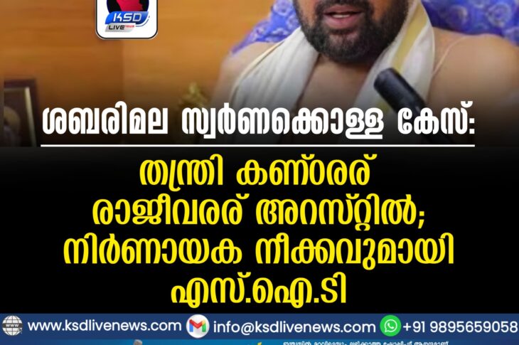 കേരളം ശബരിമല സ്വര്ണക്കൊള്ള കേസ്: തന്ത്രി കണ്ഠരര് രാജീവരര് അറസ്റ്റില്; നിര്ണായക നീക്കവുമായി എസ്.ഐ.ടിJanuary 9, 2026