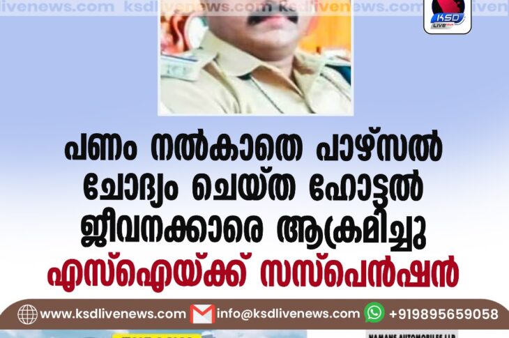 പണം നൽകാതെ പാഴ്സൽ, ചോദ്യം ചെയ്ത ഹോട്ടൽ ജീവനക്കാരെ ആക്രമിച്ചു: എസ്ഐയ്ക്ക് സസ്പെൻഷൻ
