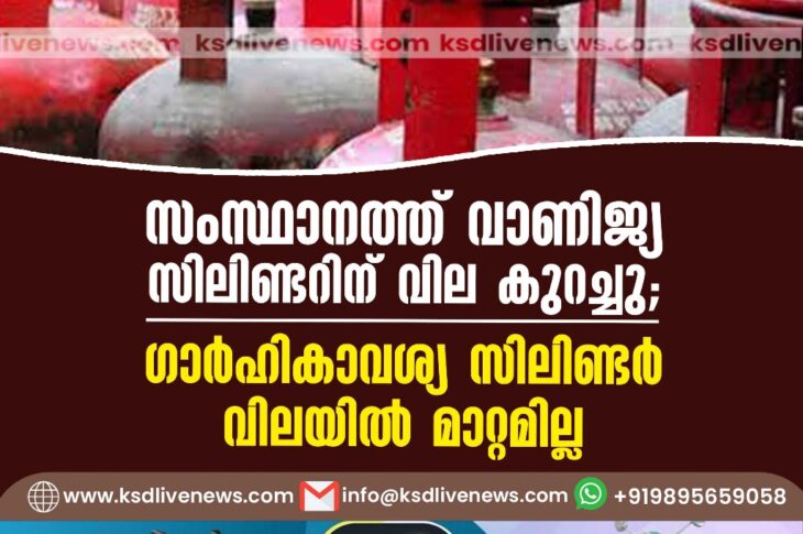കേരളം സംസ്ഥാനത്ത് വാണിജ്യ സിലിണ്ടറിന് വില കുറച്ചു; ഗാർഹികാവശ്യ സിലിണ്ടർ വിലയിൽ മാറ്റമില്ലJune 1, 2024