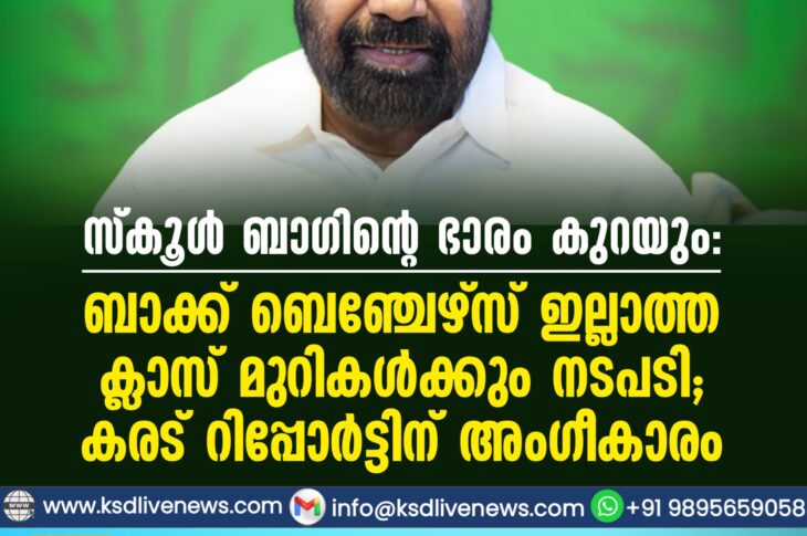 കേരളം സ്കൂള് ബാഗിന്റെ ഭാരം കുറയും: ബാക്ക് ബെഞ്ചേഴ്സ് ഇല്ലാത്ത ക്ലാസ് മുറികള്ക്കും നടപടി; കരട് റിപ്പോര്ട്ടിന് അംഗീകാരംJanuary 8, 2026