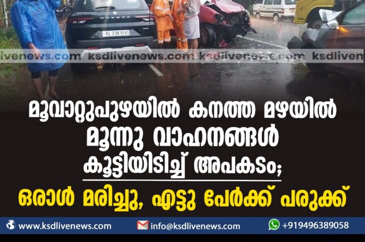 കേരളം മൂവാറ്റുപുഴയിൽ കനത്ത മഴയിൽ മൂന്നു വാഹനങ്ങൾ കൂട്ടിയിടിച്ച് അപകടം; ഒരാൾ മരിച്ചു, എട്ടു പേർക്ക് പരുക്ക്May 11, 2024
