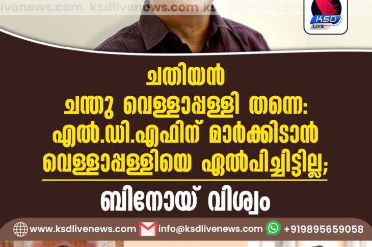 കേരളം ചതിയൻ ചന്തു വെള്ളാപ്പള്ളി തന്നെ: എല്.ഡി.എഫിന് മാര്ക്കിടാൻ വെള്ളാപ്പള്ളിയെ ഏല്പിച്ചിട്ടില്ല; ബിനോയ് വിശ്വംDecember 31, 2025