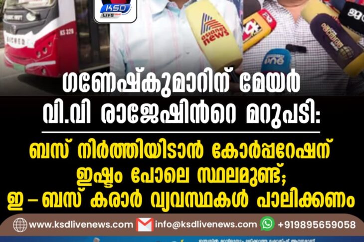 കേരളം ഗണേഷ്കുമാറിന് മേയര് വിവി രാജേഷിന്റെ മറുപടി: ബസ് നിര്ത്തിയിടാൻ കോര്പ്പറേഷന് ഇഷ്ടം പോലെ സ്ഥലമുണ്ട്; ഇ-ബസ് കരാര് വ്യവസ്ഥകള് പാലിക്കണംDecember 31, 2025