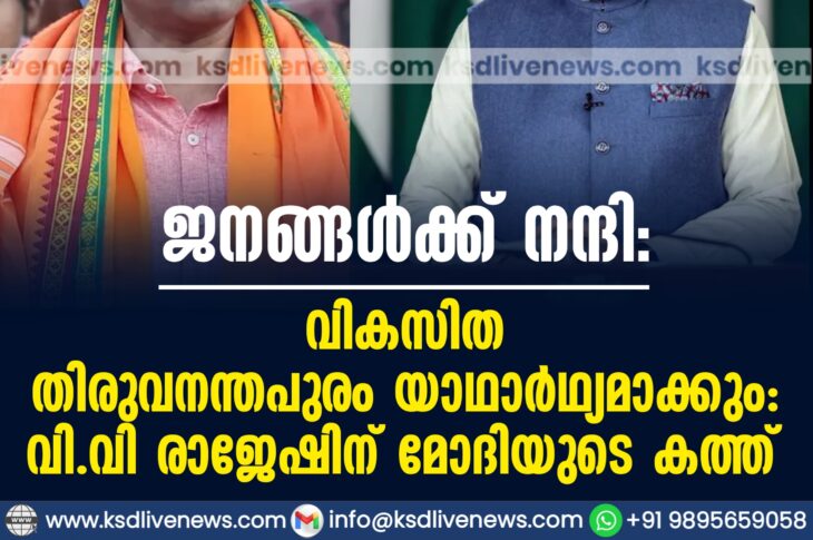 കേരളം ജനങ്ങൾക്ക് നന്ദി, വികസിത തിരുവനന്തപുരം യാഥാർഥ്യമാക്കും: വി.വി രാജേഷിന് മോദിയുടെ കത്ത്January 1, 2026