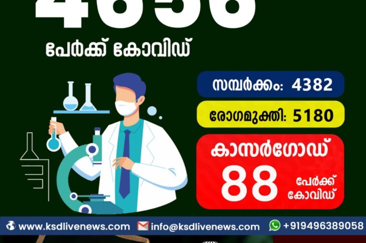 കേരളംകോവിഡ് 19 സംസ്ഥാനത്ത് ഇന്ന് 4656 പേർക്ക് കോവിഡ് സ്ഥിരീകരിച്ചു. സമ്പർക്കം വഴി 4382 പേർക്കും ; ആശ്വാസമായി 5180 പേർക്ക് രോഗ മുക്തിയും ; കാസർഗോഡ് ജില്ലയിൽ 88 പേർക്ക് പുതിയ കോവിഡ് കേസുകൾ ; മരണം 28December 7, 2021