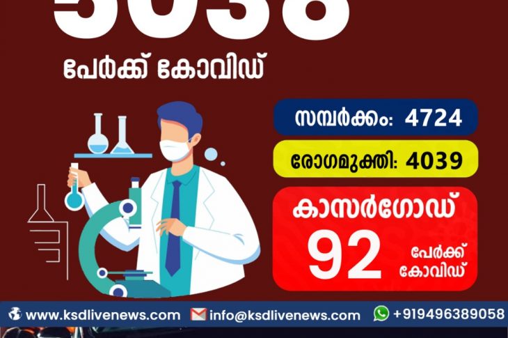 കേരളംകോവിഡ് 19 സംസ്ഥാനത്ത് ഇന്ന് 5038 പേർക്ക് കോവിഡ് സ്ഥിരീകരിച്ചു. സമ്പർക്കം വഴി 4724 പേർക്കും ; ആശ്വാസമായി 4039 പേർക്ക് രോഗ മുക്തിയും ; കാസർഗോഡ് ജില്ലയിൽ 92 പേർക്ക് പുതിയ കോവിഡ് കേസുകൾ ; മരണം 35December 8, 2021