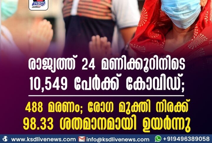 കോവിഡ് 19ദേശീയം രാജ്യത്ത് 24 മണിക്കൂറിനിടെ 10,549 പേർക്ക് കോവിഡ്; 488 മരണം; രോഗ മുക്തി നിരക്ക് 98.33 ശതമാനമായി ഉയർന്നുNovember 26, 2021