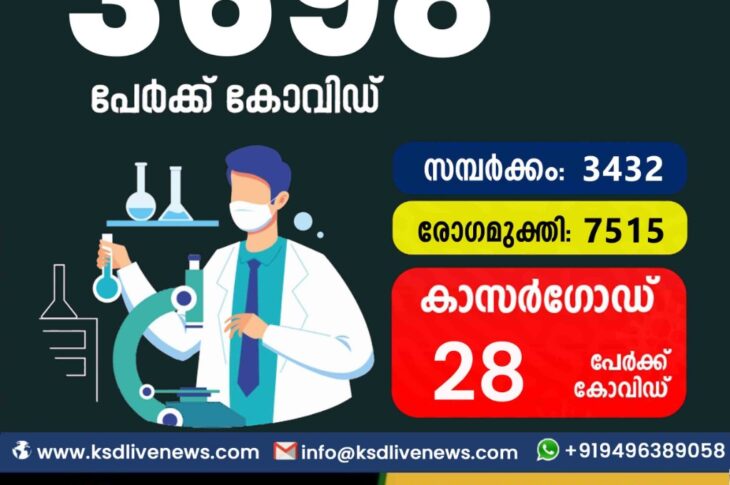 കേരളംകോവിഡ് 19 ആശ്വസം; സംസ്ഥാനത്ത് ഇന്ന് 3698 പേർക്ക് കോവിഡ് സ്ഥിരീകരിച്ചു. സമ്പർക്കം വഴി 3432 പേർക്കും ; ആശ്വാസമായി 7515 പേർക്ക് രോഗ മുക്തിയും ; കാസർഗോഡ് ജില്ലയിൽ 28 പേർക്ക് പുതിയ കോവിഡ് കേസുകൾ ; മരണം 75November 22, 2021