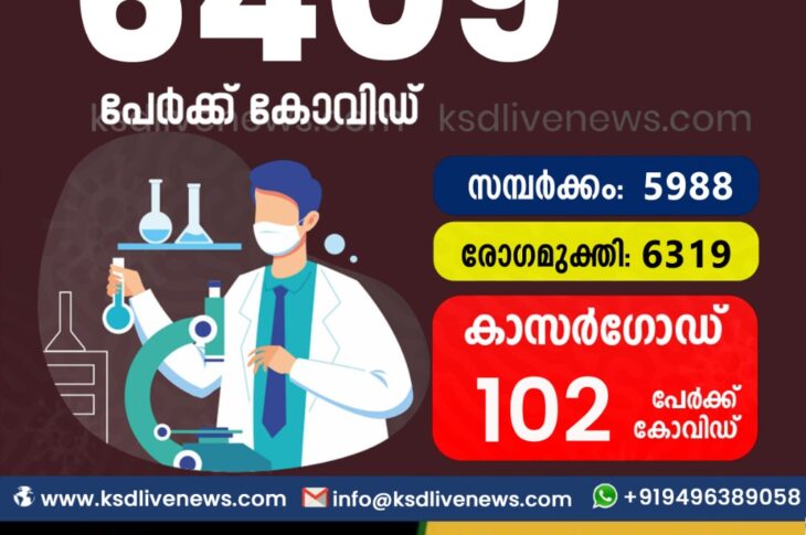 കേരളംകോവിഡ് 19 സംസ്ഥാനത്ത് ഇന്ന് 6409 പേർക്ക് കോവിഡ് സ്ഥിരീകരിച്ചു. സമ്പർക്കം വഴി 5988 പേർക്കും ; ആശ്വാസമായി 6319 പേർക്ക് രോഗമുക്തി; കാസർഗോഡ് ജില്ലയിൽ 102 പേർക്ക് പുതിയ കോവിഡ് കേസുകൾ ; മരണം 47November 9, 2021