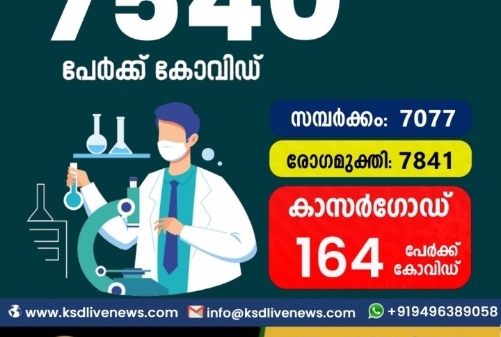 കേരളംകോവിഡ് 19 സംസ്ഥാനത്ത് ഇന്ന് 7540 പേർക്ക് കോവിഡ് സ്ഥിരീകരിച്ചു. സമ്പർക്കം വഴി 7077 പേർക്കും ; ആശ്വാസമായി 7841 പേർക്ക് രോഗ മുക്തിയും ; കാസർഗോഡ് ജില്ലയിൽ 164 പേർക്ക് പുതിയ കോവിഡ് കേസുകൾ ; മരണം 48November 10, 2021