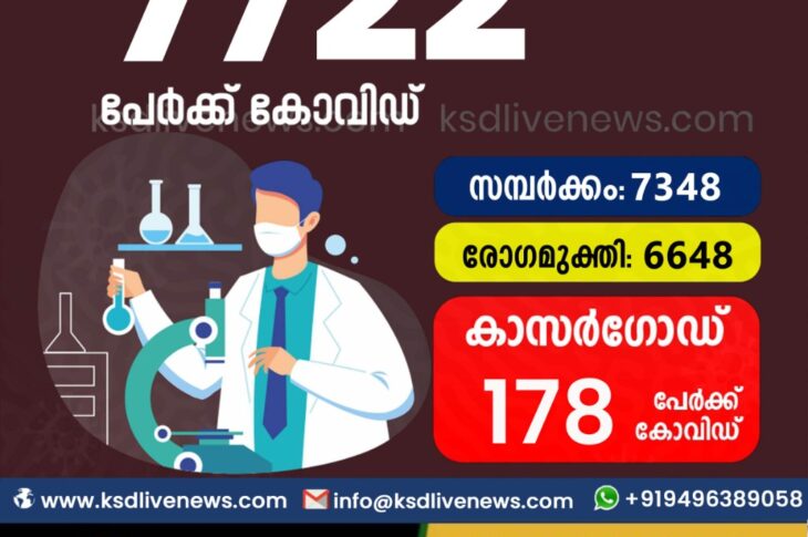 കേരളംകോവിഡ് 19 സംസ്ഥാനത്ത് ഇന്ന് 7722 പേർക്ക് കോവിഡ് സ്ഥിരീകരിച്ചു. സമ്പർക്കം വഴി 7348 പേർക്കും ; ആശ്വാസമായി 6648 പേർക്ക് രോഗ മുക്തിയും ; കാസർഗോഡ് ജില്ലയിൽ 178 പേർക്ക് പുതിയ കോവിഡ് കേസുകൾ ; മരണം 86October 29, 2021