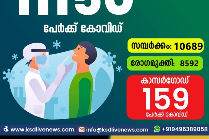 സംസ്ഥാനത്ത് ഇന്ന് 11,150 പേർക്ക് കോവിഡ് സ്ഥിരീകരിച്ചു. സമ്പർക്കം വഴി 10,689 പേർക്കും ; ആശ്വാസമായി 8592 പേർക്ക് രോഗ മുക്തിയും ; കാസർഗോഡ് ജില്ലയിൽ 159 പേർക്ക് പുതിയ കോവിഡ് കേസുകൾ ; മരണം 82