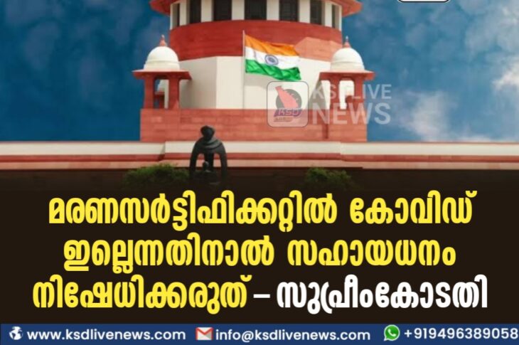 കോവിഡ് 19ദേശീയം മരണസർട്ടിഫിക്കറ്റിൽ ‘കോവിഡ്’ ഇല്ലെന്നതിനാൽ സഹായധനം നിഷേധിക്കരുത് -സുപ്രീംകോടതിOctober 5, 2021