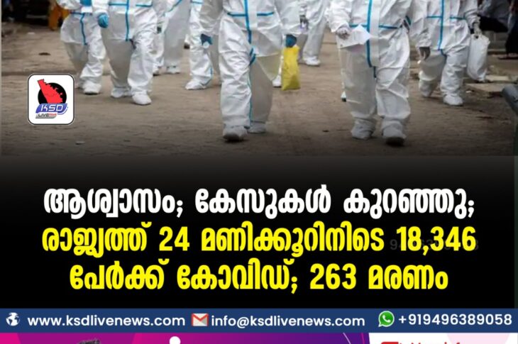 കോവിഡ് 19ദേശീയം ആശ്വാസം; കേസുകൾ കുറഞ്ഞു, രാജ്യത്ത് 24 മണിക്കൂറിനിടെ 18,346 പേർക്ക് കോവിഡ്; 263 മരണംOctober 5, 2021