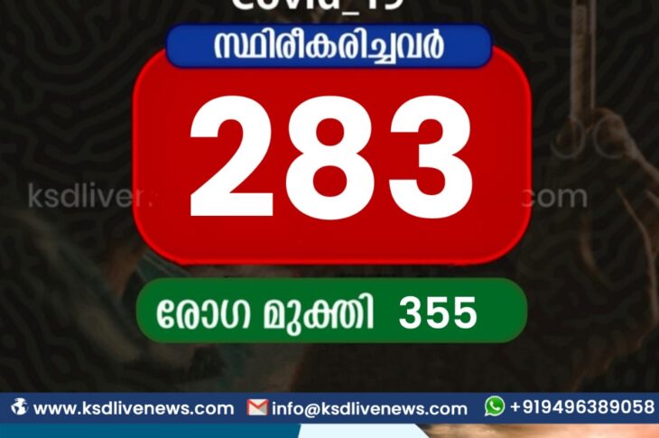 കാസർഗോഡ്കോവിഡ് 19 കാസർഗോഡ് ജില്ലയിൽ ഇന്ന് 283 പേർക്ക് കോവിഡ് സ്ഥിരീകരിച്ചു. 355 പേർക്ക് രോഗമുക്തിSeptember 25, 2021