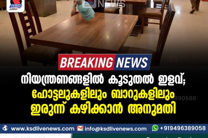 കേരളംകോവിഡ് 19 നിയന്ത്രണങ്ങളില് കൂടുതല് ഇളവ്; ഹോട്ടലുകളിലും ബാറുകളിലും ഇരുന്ന് കഴിക്കാന് അനുമതിSeptember 25, 2021