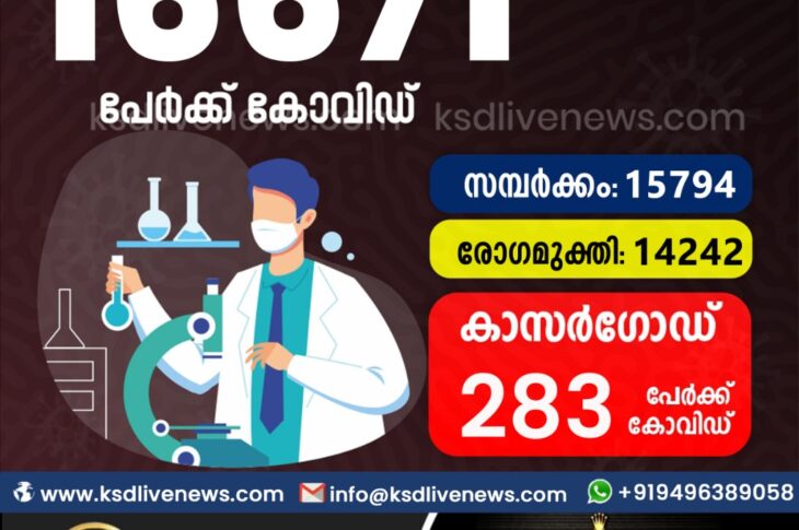 കേരളംകോവിഡ് 19 സംസ്ഥാനത്ത് ഇന്ന് 16671 പേർക്ക് കോവിഡ് സ്ഥിരീകരിച്ചു. സമ്പർക്കം വഴി 15,794 പേർക്കും ; ആശ്വാസമായി 14,242 പേർക്ക് രോഗ മുക്തിയും ; കാസർഗോഡ് ജില്ലയിൽ 283 പേർക്ക് പുതിയ കോവിഡ് കേസുകൾ ; മരണം 120September 25, 2021