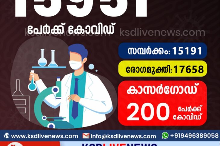 കേരളംകോവിഡ് 19 സംസ്ഥാനത്ത് ഇന്ന് 15,951 പേർക്ക് കോവിഡ് സ്ഥിരീകരിച്ചു. സമ്പർക്കം വഴി 15,191 പേർക്കും ; ആശ്വാസമായി 17,658 പേർക്ക് രോഗ മുക്തിയും ; കാസർഗോഡ് ജില്ലയിൽ 200 പേർക്ക് പുതിയ കോവിഡ് കേസുകൾ ; മരണം 165September 26, 2021