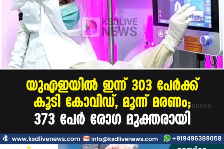 കോവിഡ് 19ഗൾഫ് യുഎഇയില് ഇന്ന് 303 പേര്ക്ക് കൂടി കോവിഡ്, മൂന്ന് മരണം ; 373 പേർ രോഗ മുക്തരായിSeptember 24, 2021