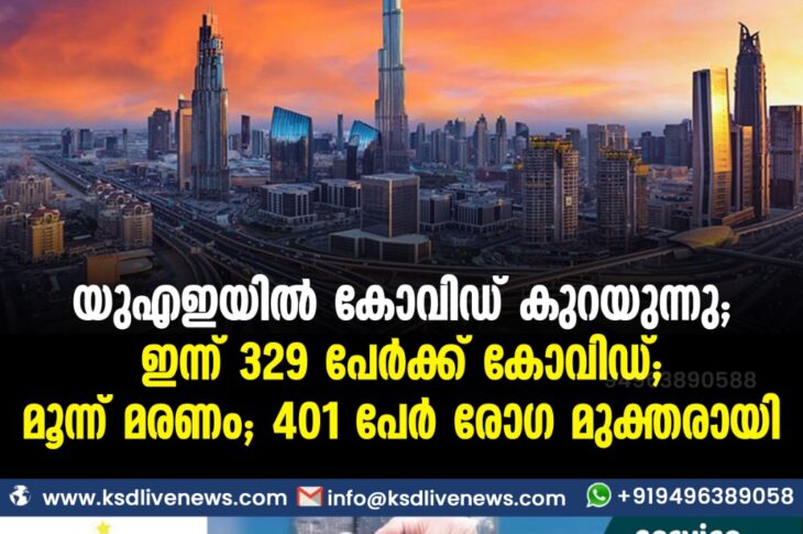 കോവിഡ് 19ഗൾഫ് യുഎഇയില് കോവിഡ് കുറയുന്നു; ഇന്ന് 329 പേര്ക്ക് കോവിഡ് ; മൂന്ന് മരണം; 401 പേർ രോഗ മുക്തരായിSeptember 23, 2021