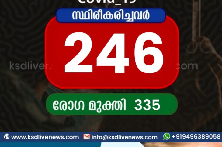 കാസർഗോഡ്കോവിഡ് 19 കാസർഗോഡ് ജില്ലയിൽ ഇന്ന് 246 പേർക്ക് കോവിഡ് സ്ഥിരീകരിച്ചു. 335 പേർക്ക് രോഗമുക്തിSeptember 24, 2021