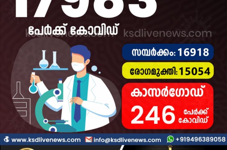 കേരളംകോവിഡ് 19 സംസ്ഥാനത്ത് ഇന്ന് 17983 പേർക്ക് കോവിഡ് സ്ഥിരീകരിച്ചു. സമ്പർക്കം വഴി 16918 പേർക്കും ; ആശ്വാസമായി 15054 പേർക്ക് രോഗ മുക്തിയും ; കാസർഗോഡ് ജില്ലയിൽ 246 പേർക്ക് പുതിയ കോവിഡ് കേസുകൾ ; മരണം 127September 24, 2021