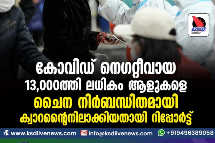 കോവിഡ് 19വിദേശം കോവിഡ് നെഗറ്റീവായ 13,000-ത്തിലധികം ആളുകളെ ചൈന നിര്ബന്ധിതമായി ക്വാറന്റൈനിലാക്കിയതായി റിപ്പോര്ട്ട്May 21, 2022