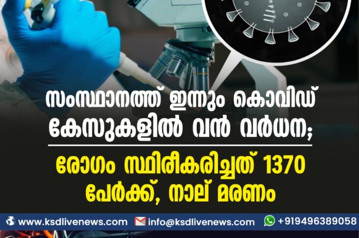 കേരളംകോവിഡ് 19 സംസ്ഥാനത്ത് ഇന്നും കൊവിഡ് കേസുകളിൽ വൻ വർധന; രോഗം സ്ഥിരീകരിച്ചത് 1370 പേർക്ക്, നാല് മരണംJune 1, 2022