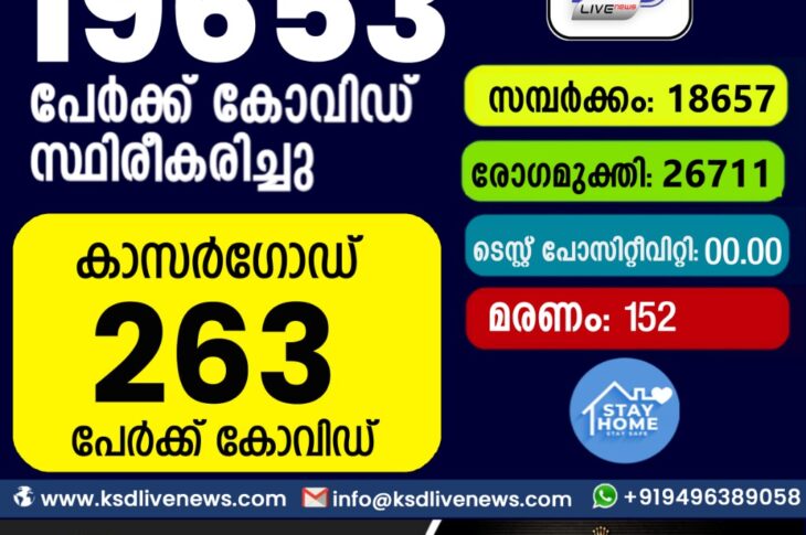 കാസർഗോഡ്കോവിഡ് 19 കാസർഗോഡ് ജില്ലയിൽ ഇന്ന് 263 പേർക്ക് കോവിഡ് സ്ഥിരീകരിച്ചു. 483 പേർക്ക് രോഗമുക്തിSeptember 19, 2021