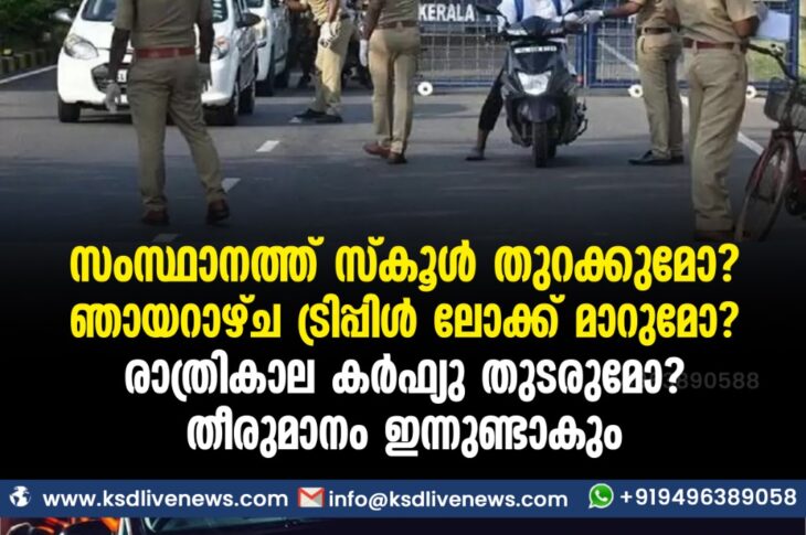 കേരളംകോവിഡ് 19 സംസ്ഥാനത്ത് സ്കൂള് തുറക്കുമോ? ഞായറാഴ്ച ട്രിപ്പിള് ലോക്ക് മാറുമോ? രാത്രികാല കര്ഫ്യു തുടരുമോ? തീരുമാനം ഇന്നുണ്ടാകുംSeptember 7, 2021