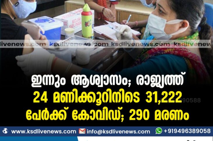 കോവിഡ് 19ദേശീയം ഇന്നും ആശ്വാസം; രാജ്യത്ത് 24 മണിക്കൂറിനിടെ 31,222 പേർക്ക് കോവിഡ്; 290 മരണംSeptember 7, 2021