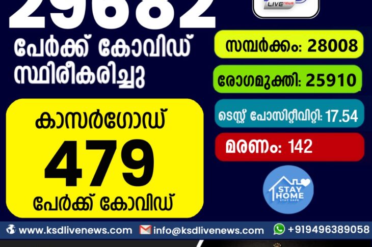 കേരളംകോവിഡ് 19 സംസ്ഥാനത്ത് ഇന്ന് 29,682 പേർക്ക് കോവിഡ് സ്ഥിരീകരിച്ചു. സമ്പർക്കം വഴി 28,008 പേർക്കും ; ആശ്വാസമായി 25,910 പേർക്ക് രോഗ മുക്തിയും ; കാസർഗോഡ് ജില്ലയിൽ 479 പേർക്ക് പുതിയ കോവിഡ് കേസുകൾ ; മരണം 142September 4, 2021