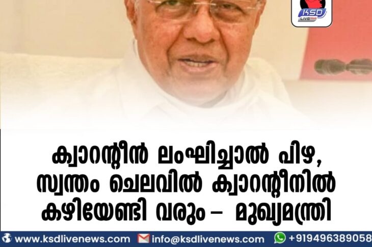 കേരളംകോവിഡ് 19 ക്വാറന്റീന് ലംഘിച്ചാല് പിഴ, സ്വന്തം ചെലവില് ക്വാറന്റീനില് കഴിയേണ്ടിവരും- മുഖ്യമന്ത്രിSeptember 4, 2021