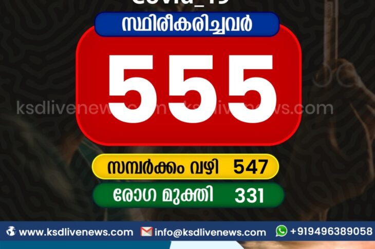 കാസർഗോഡ്കോവിഡ് 19 കാസർഗോഡ് ജില്ലയിൽ ഇന്ന് 555 പേർക്ക് കോവിഡ് സ്ഥിരീകരിച്ചു. സമ്പർക്കം വഴി 547 പേർക്കും. 331 പേർക്ക് രോഗമുക്തിSeptember 2, 2021