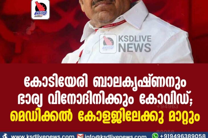 കേരളംകോവിഡ് 19 കോടിയേരി ബാലകൃഷ്ണനും ഭാര്യ വിനോദിനിക്കും കോവിഡ്; മെഡിക്കൽ കോളജിലേക്കു മാറ്റുംAugust 31, 2021