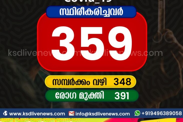 കാസർഗോഡ്കോവിഡ് 19 കാസർഗോഡ് ജില്ലയിൽ ഇന്ന് 359 പേർക്ക് കോവിഡ് സ്ഥിരീകരിച്ചു. സമ്പർക്കം വഴി 348 പേർക്കും. 391 പേർക്ക് രോഗമുക്തിAugust 30, 2021