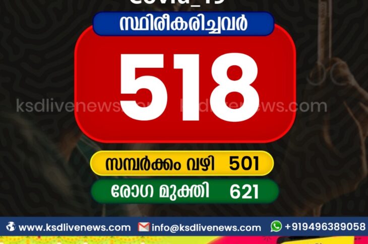 കാസർഗോഡ്കോവിഡ് 19 കാസർഗോഡ് ജില്ലയിൽ ഇന്ന് 518 പേർക്ക് കോവിഡ് സ്ഥിരീകരിച്ചു. സമ്പർക്കം വഴി 501 പേർക്കും. 621 പേർക്ക് രോഗമുക്തിAugust 24, 2021