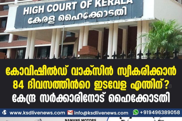 കോവിഡ് 19ദേശീയം കോവിഷീൽഡ് വാക്സിൻ സ്വീകരിക്കാന് 84 ദിവസത്തിന്റെ ഇടവേള എന്തിന്? കേന്ദ്ര സര്ക്കാരിനോട് ഹൈക്കോടതിAugust 24, 2021