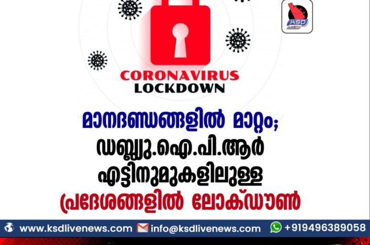 കേരളംകോവിഡ് 19 മാനദണ്ഡങ്ങളിൽ മാറ്റം;ഡബ്ല്യു.ഐ.പി.ആര് എട്ടിനു മുകളിലുള്ള പ്രദേശങ്ങളില് ലോക്ഡൗണ്August 10, 2021