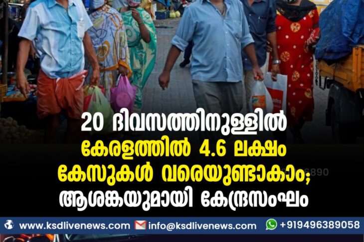 കോവിഡ് 19ദേശീയം 20 ദിവസത്തിനുള്ളില് കേരളത്തില് 4.6 ലക്ഷം കേസുകള് വരെയുണ്ടാകാം; ആശങ്കയുമായി കേന്ദ്രസംഘംAugust 11, 2021
