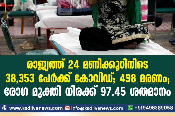 കോവിഡ് 19ദേശീയം രാജ്യത്ത് 24 മണിക്കൂറിനിടെ 38,353 പേർക്ക് കോവിഡ്; 498 മരണം; രോഗ മുക്തി നിരക്ക് 97.45 ശതമാനംAugust 11, 2021
