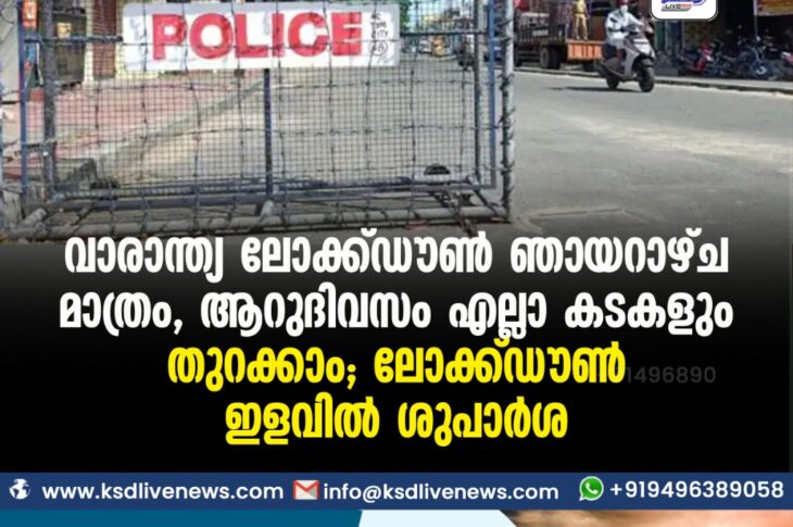 കേരളംകോവിഡ് 19 വാരാന്ത്യ ലോക്ക്ഡൗണ് ഞായറാഴ്ച മാത്രം, ആറുദിവസം എല്ലാ കടകളും തുറക്കാം; ലോക്ക്ഡൗണ് ഇളവില് ശുപാര്ശAugust 3, 2021