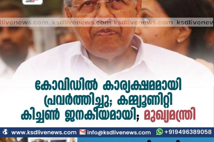 കേരളംകോവിഡ് 19 കോവിഡില് കാര്യക്ഷമമായി പ്രവര്ത്തിച്ചു; കമ്മ്യൂണിറ്റി കിച്ചണ് ജനകീയമായി- മുഖ്യമന്ത്രിJuly 27, 2021