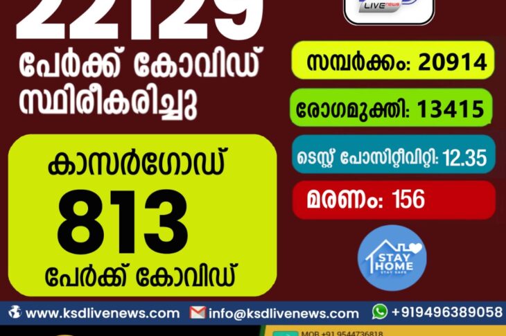 കേരളംകോവിഡ് 19 കോവിഡിൽ വിറച്ച് കേരളം; സംസ്ഥാനത്ത് ഇന്ന് 22129 പേർക്ക് കോവിഡ് സ്ഥിരീകരിച്ചു. സമ്പർക്കം വഴി 20914 പേർക്കും ; ആശ്വാസമായി 13415 പേർക്ക് രോഗ മുക്തിയും ; കാസർഗോഡ് ജില്ലയിൽ 813 പേർക്ക് പുതിയ കോവിഡ് കേസുകൾ ; മരണം 156July 27, 2021