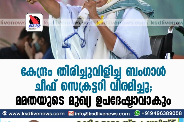 കോവിഡ് 19ദേശീയം കേന്ദ്രം തിരിച്ചുവിളിച്ച ബംഗാള് ചീഫ് സെക്രട്ടറി വിരമിച്ചു; മമതയുടെ മുഖ്യ ഉപദേഷ്ടാവാകുംMay 31, 2021