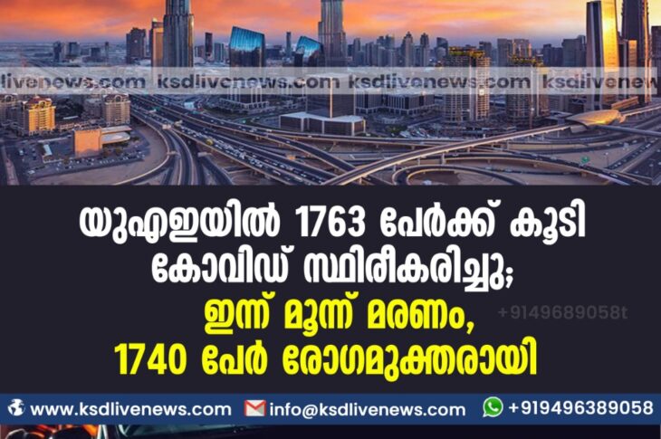 കോവിഡ് 19ഗൾഫ് യുഎഇയില് 1763 പേര്ക്ക് കൂടി കോവിഡ് സ്ഥിരീകരിച്ചു; ഇന്ന് മൂന്ന് മരണം, 1740 പേർ രോഗമുക്തരായിMay 31, 2021