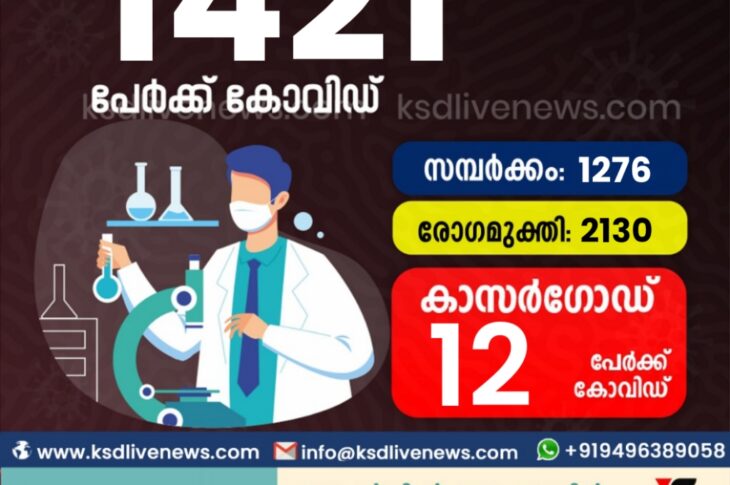 കേരളംകോവിഡ് 19 സംസ്ഥാനത്ത് ഇന്ന് 1421 കോവിഡ് സ്ഥിരീകരിച്ചു. സമ്പർക്കം വഴി 1276 പേർക്കും ; ആശ്വാസമായി 2130 പേർക്ക് രോഗമുക്തി ; കാസർഗോഡ് ജില്ലയിൽ 12 പേർക്ക് പുതിയ കോവിഡ് കേസുകൾ ; മരണം 04March 9, 2022