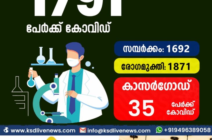 കേരളംകോവിഡ് 19 സംസ്ഥാനത്ത് ഇന്ന് 1791 കോവിഡ് സ്ഥിരീകരിച്ചു. സമ്പർക്കം വഴി 1692 പേർക്കും ; ആശ്വാസമായി 1871 പേർക്ക് രോഗമുക്തി ; കാസർഗോഡ് ജില്ലയിൽ 34 പേർക്ക് പുതിയ കോവിഡ് കേസുകൾ ; മരണം 04March 8, 2022